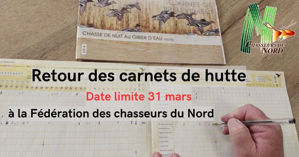 Nous vous rappelons que le retour du carnet de prélèvement de chasse de nuit (carnet de hutte) reste obligatoire, même si vous avez déjà saisi vos prélèvements sur Chassadapt.