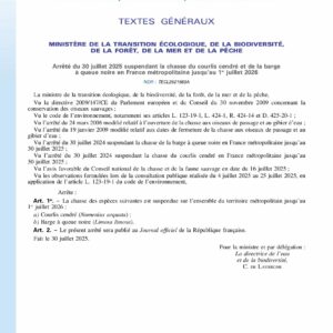Arrêté du 30juillet 2025 suspendant la chasse du courlis cendré et de la barge à queue noire en France métropolitaine pour la saison 2025-2026