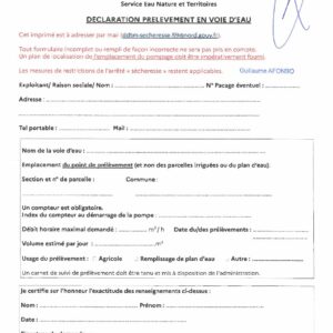 déclaration prélèvement eau